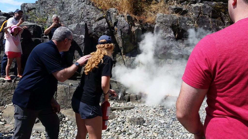 By far the biggest risk is fire during the summer season. In August the island becomes a tinder box and is so dry that grass would burn and advance at speeds up ten km/hr depending on winds. The inner part of the island is covered with old growth trees and the forest can erupt in moments into a fire storm.
