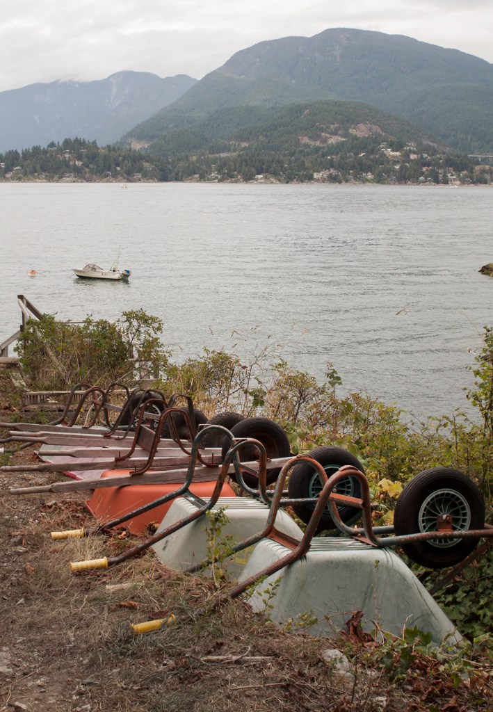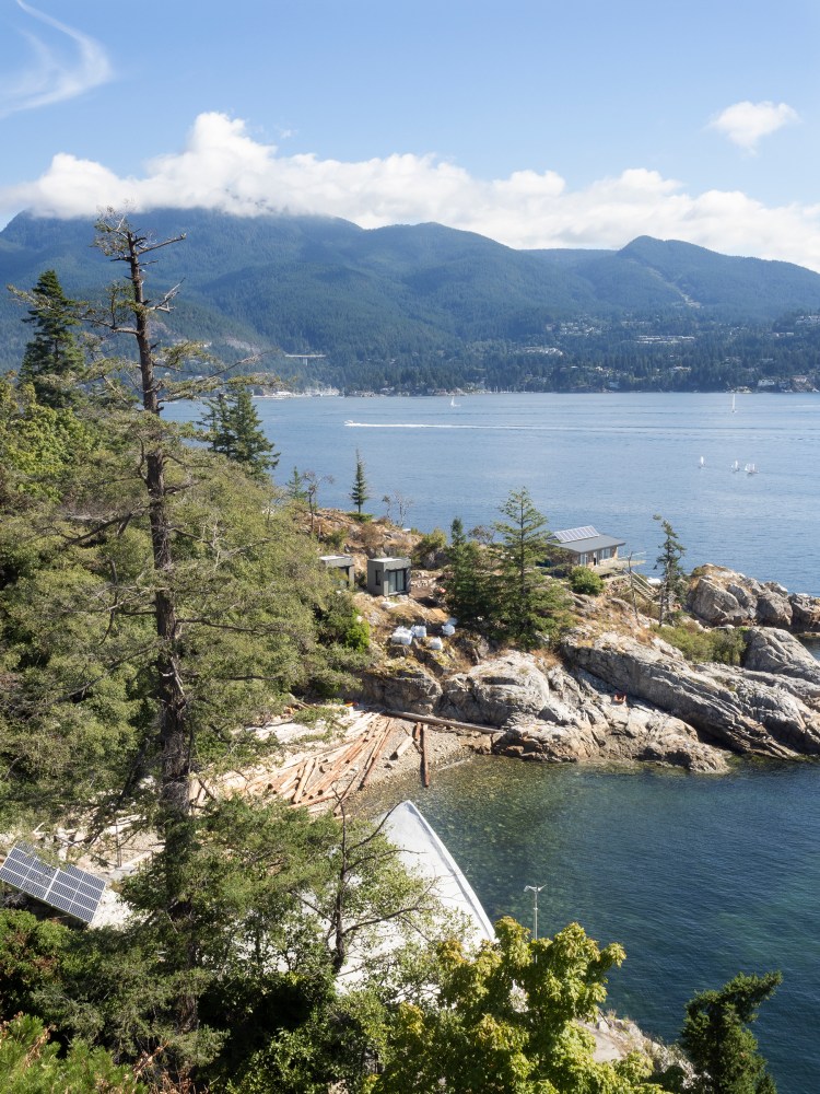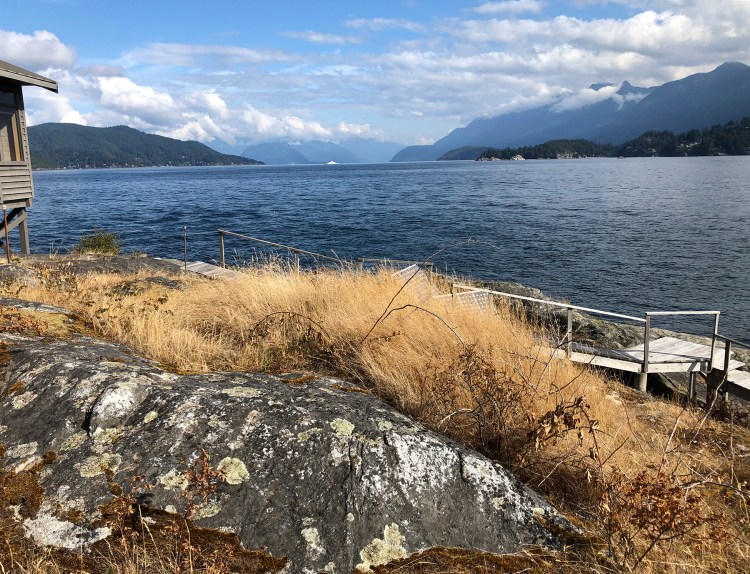 Passage Island feels like an ecological reserve. The lush old growth forest in its interior is dominated by 200 feet tall Douglas Fir. Tall bamboos growing up to 30 feet are clustered on some lots. Passage lays 2.5 km west of the mainland and is sometimes referred to the little rock in the middle of Howe Sound. A small trail cuts 0.6 km north to south with a few branches connecting houses east and West. It is only 0.2 km wide. Originally, the island was divided into 61 lots of which 30 are now occupied by houses. Only a small handful of houses serve as full time residences with a few more houses empty only during the winter months. The rest are recreational.