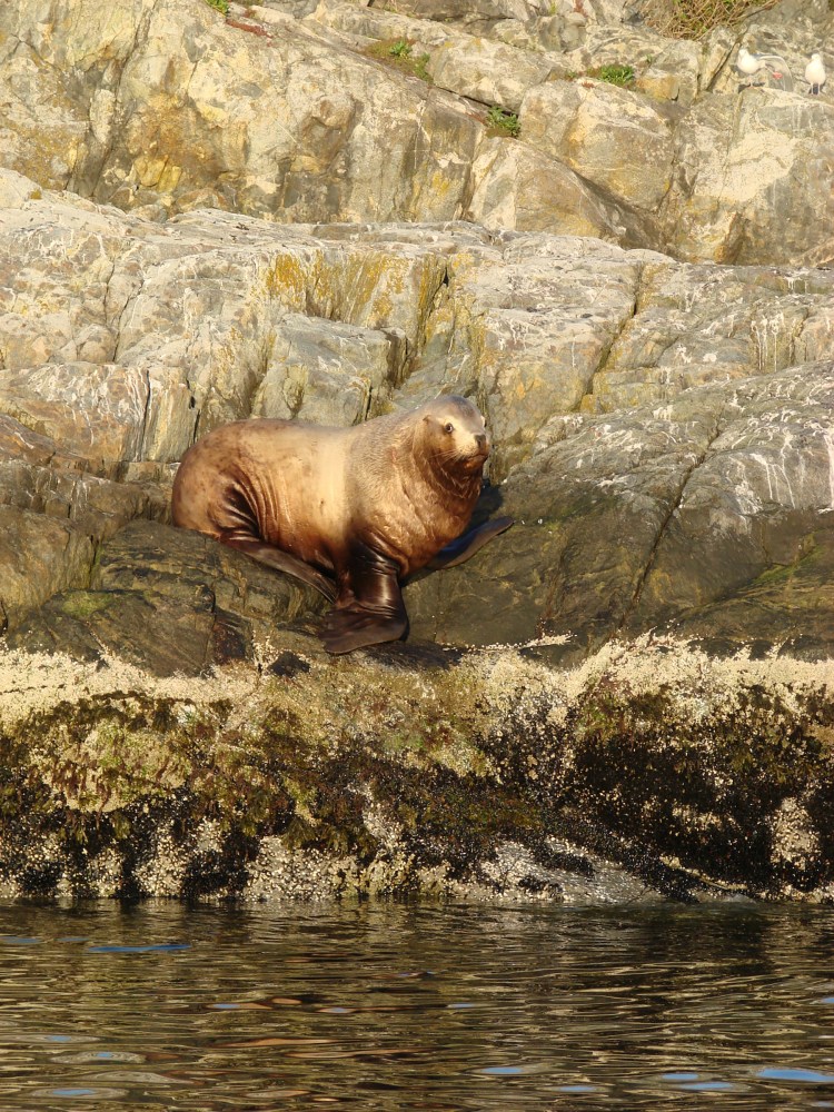 The island is home to a rich assortment of birds, including finches, wood peckers, humming birds, eagles, cormorants and oyster catchers and of course, sea gulls. The crows sometimes make a crazy racket while the eagles respond with their shrill tweaks. Surf Scoters arrive on their wintering grounds around Passage Island in October and November. They gather in large flocks of hundreds of birds on the water that look from a distance like dark floating islands. When they are disturbed, they take off like sea planes with an engine problem, making a loud rushing sound as their wings flap on the water. Canada geese arrive in the spring time to claim one of the vacant lots as their own and stay until their chicks are hatched.