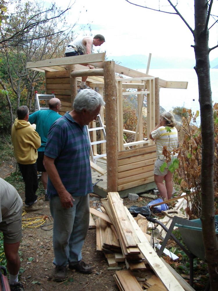 A book could be written about the variety of houses on the island. Because of the location it seems to incite the imagination for unconventional architecture. It started with the 2 original houses with concrete saddle roofs that Phil Matty built. Some houses are simple A-frames, others are elaborate architectural wonders. One house, we call it the “high rise”, is 4 storeys high and since the owner is an engineer, the elaborate wiring is probably enough to hold the house together in a storm. Another house is rotating. The house is built on a base of round metal rails and can be turned 360 degrees depending on the desired view or the position of the sun. It sits on one of the highest points of the island with unobstructed view of downtown Vancouver and UBC. A recent development is the emergence of “tiny houses”, little houses of less that 100 square feet which require no building permit.
