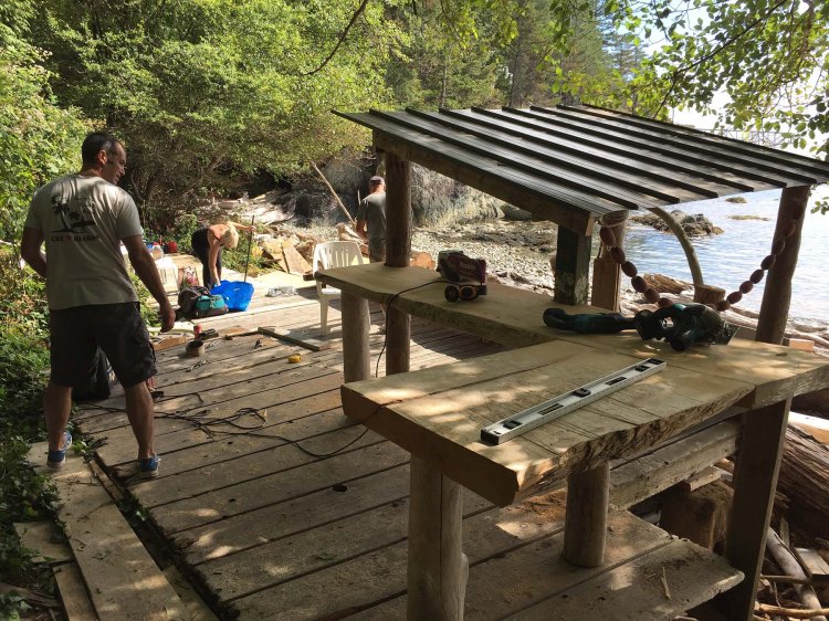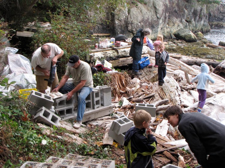 Living on an off-the-grid island means that a lot of time is absorbed by “projects”. There are private projects to maintain your own property and public projects when islanders come together to build or fix common structures such as the West Bay Palapa or for maintenance tasks such as cleaning the beaches from washed up debris. One of the big annual community events is preparation for and loading of a garbage barge. Private projects range from building houses, rock steps, or landscaping to maintenance chores including cleaning gutters, painting and preserving wood structures, or cutting and chopping fire wood.