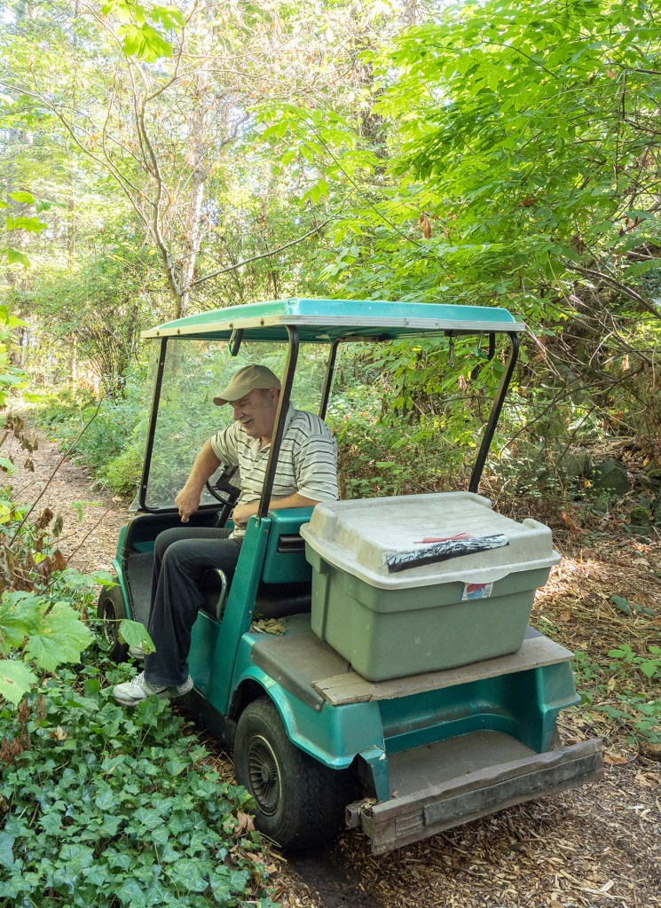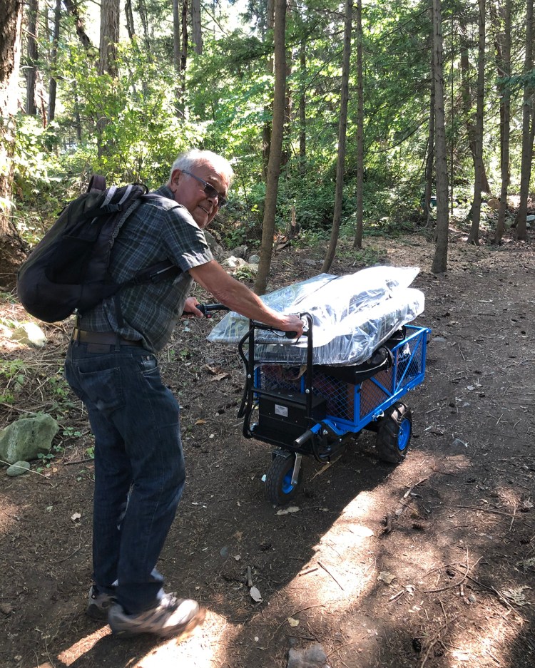 Transportation and hauling on the island is accomplished mostly by wheel barrow. There are also 4 lawn tractors with trailers, 2 ATVs, 1 golf cart and even some creative contraptions involving e-bicycles and e-wagons.
